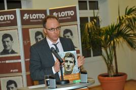 Fritz Walter zu Ehren hat Lotto Rheinland-Pfalz seinen 13. Kunstpreis ausgeschrieben. Ein paar der besten Einsendungen des Kunstpreises "Fritz Walter" wurden bei der Lesung - keine 40 Kilometer von Fritz Walters Heimatgemeinde - von den Autoren selbst vorgetragen. So auch von Bettina Hoffmann-Günster aus Westerburg, die mit ihrem Gedicht "Wer" den dritten Preis erhalten hatte. Mit treffenden Worten beschreibt die Literatin viele positive Eigenschaften der Fußballlegende Fritz Walter, wie Fairness, Ehrgeiz und Bodenständigkeit. Berührend war die wahre Geschichte der 86jährigen Annemarie Lehmann, die in den Kriegswirren des 2. Weltkrieges mit dem fünf Jahre älteren Fritz Walter eine romantische Zeit im Spätsommer 1942 verlebte. Ein besonderer Gast war der 54er Weltmeister und Mannschaftskamerad Horst Eckel, der von der engen Freundschaft zu Fritz Walter berichtete. Auch Hans-Peter Briegel, der selbst von 1974 bis 1984 beim 1. FC Kaiserslautern spielte, erzählte Anekdoten, die er mit Fritz Walter erlebt hatte. Einblicke in den Charakter des Ausnahmesportlers erhielt das Publikum auch von SWR-Moderator Peter Jochen Degen, der aus dem Buch "Fritz Walter - Kapitän für Deutschland" einige Passagen vorlas. Das Buch wurde anlässlich des 90. Geburtstages der Pfälzer Fußballlegende von der Fritz Walter-Stiftung herausgegeben.