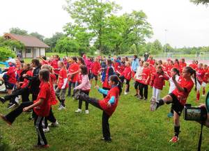 Außerdem sorgte der bekannte Entertainer Oliver Mager mit seiner Musikanlage für Stimmung. Zwischen den Spielen übte er mit den Mädchen zwei Tänze ein, die dann bei der Siegerehrung von allen Kindern getanzt wurde.